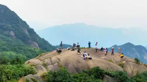 After reaching the top of Niuguzhang, the friends sat on a big rock on the top of the mountain, admiring the huge rocks of various shapes and posing for photos.