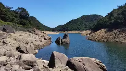 We started our descent at the right time. We still had a long way to go, so we needed to keep going! We arrived at the Dazhudou Reservoir, a reservoir nestled on the mountainside that resembled a giant celestial lake. The high mountains made the reservoir even more beautiful. We rested and took some photos, and we were halfway down the mountain.