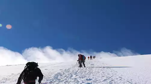 After a good rest at the base camp, get up at 2 a.m., pack your equipment, and organize your equipment again after eating. The team leader will determine the list of team members who will reach the summit based on everyone's physical condition, and then reach the summit with the help of cooperation.