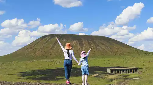 After breakfast, we'll head to the Ulan Hada Volcanic Geological Park, once featured on the cover of China National Geographic magazine. Over 30 volcanoes are scattered across the grasslands like beads, their flat terrain showcasing their impressive features. Driving along the Volcanic Highway, we'll gaze upon the majestic volcanic cones and the exposed dark red volcanic rock, a marvel at the wonders of nature. Afterward, we'll arrive near the volcanic cluster and begin our "Volcano Exploration" activity!