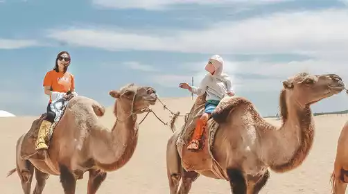 Arrive at the desert off-road base in the afternoon. After checking in at the hotel, rest for a while. The pristine and majestic desert here is a paradise for off-road enthusiasts. A wealth of desert recreational activities are available (included in the package): Start with a desert off-road trek and experience the thrill of surfing in the vast sea of sand! Afterward, you can choose from ziplining, sandboarding, ATV rides, and camel riding. China-TravelNote has also prepared some clothing for ladies, so you can choose and take photos.