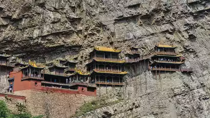 In the afternoon, we'll visit the Hanging Temple, which has become a major hit thanks to the release of "Black Myth: Wukong." Named one of the "World's Ten Most Dangerous Structures" by Time Magazine, it commands a significant reputation on Mount Huashan for its sheer hazard. Some say the Hanging Temple soars halfway up the cliff face, suspended in mid-air by three horsetails. Slender wooden pillars support the structure, a truly remarkable feat.