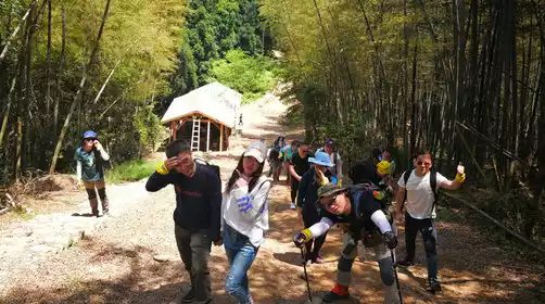 Afterwards, we walked through a gravel road pricked by pine needles, then walked a short distance on the highway to recharge our batteries. We then sang songs on a wooden plank road amidst tea fields, walked along a dirt road shaded by ancient trees, crossed a clear stream, and passed an unknown blue reservoir. The wildness was endless! We plan to return at 3:30 PM.