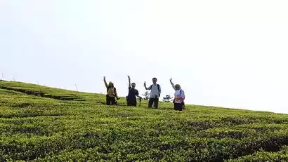After climbing two steep slopes and passing the tea plantations covering the mountains, we were pleasantly surprised. The lake is surrounded by mountains on all sides. Phoenix Lake is like a crystal stone embedded in the green. We had lunch by the lake.