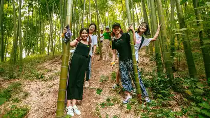 Descending along the Shangxiang Ancient Trail, the mountains followed the winding road, the trees were lush, and only the birds singing in the forest could be heard. Soon we came to the winding mountain road, and endless tea fields appeared in front of us. After about 20 minutes along the winding mountain road, we turned into the interesting bamboo forest hiking section. Time always flies when walking in the bamboo forest path.