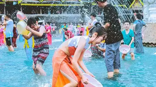 Experience the water splashing carnival in the indigenous village of Dai Nationality Park