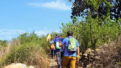 Arriving at the starting point of the hike, the leader led everyone to do warm-up exercises, and then entered the hiking trail, where there were gurgling streams and jungle crossings.