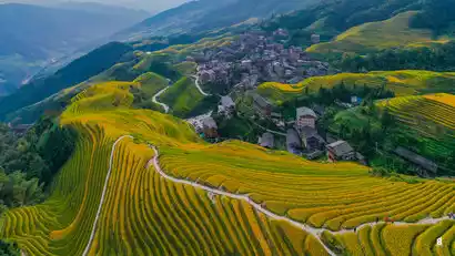 The Nine Dragons and Five Tigers are a must-see photo spot at the Longji Rice Terraces. The nine ridges resemble a swimming dragon, while the five rounded hills resemble crouching tigers. The terraces are clearly tiered, with winding lines like waves, creating a sense of mystery, especially in foggy weather. The evening sun shines on the terraces, revealing their winding curves and breathtaking beauty.