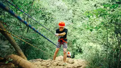 After about four hours, we arrived in Tonglu, Zhejiang. After lunch at a local farmer's house, we lightly prepared for our rappelling adventure. We reached a 37-meter drop. At this point, listen carefully to your leader's explanation of the rappelling techniques. Safety first, no slacking! After mastering the essentials, we donned our gear and began descending. Rappelling down the 37-meter drop gives you a true Spider-Man experience. With the wind whizzing past your ears, you'll experience the thrill of speed and excitement in the air.