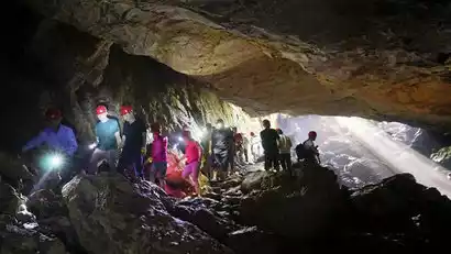 We packed our bags and, led by our team leader and guide, headed for the steep slope of Leopard Cliff. Experience the thrill of wall-climbing on a 70-degree slope – a feat only we could muster. Arriving at the mountain camp, we rested briefly before unpacking our belongings. We then embarked on our courage-boosting adventure: Wolong Cave. Donning our caving gear, we embarked on an exciting and challenging cave exploration, led by our team leader and guide. We witnessed the ever-changing stalactites and heard the eerie sound of dripping water. Compared to Jinniu Cave, Wolong Cave is a water cave, descending deeper, darker, and with more currents. The trekking distance was also longer, taking about two hours.