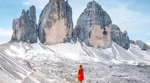Starting from the parking lot, you will pass by several mountain huts with different styles, including the mountain hut Rifugio Auronzo, which is known as the "Refuge in the Sky City". This is also our starting point. Starting from here, it is not only the gateway to explore the three peaks, but also an excellent viewpoint to appreciate the spectacular mountain scenery.
