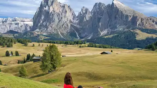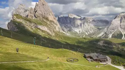 Take the cable car to the highest point of the Hughes Plateau, where you'll enjoy breathtaking views of each area: the magnificent Gardena Valley to the north, the majestic Sciliar Peak to the southwest, and the rolling hills of the Dolomites to the southeast. Each scene is a picturesque display of nature's grandeur.