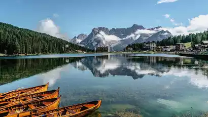 Arrive at the small town of Cortina d'Ampezzo, a small town in a wide valley surrounded by mountains. It has only about 6,000 people, but it has long been a well-known outdoor sports center.