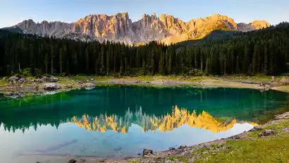 In the afternoon, we drove to Italy’s “Rainbow Lake” [Lago di Carezza]. It’s perfect to take a walk along the Rainbow Lake. As long as the weather is good, taking photos here will be great!