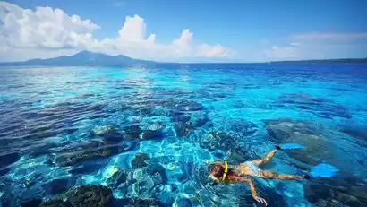 There are beautiful coral reefs. Snorkeling allows you to see many small fish swimming among the corals. If there is no tide, you can also go to the island and walk around the island.