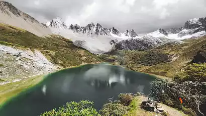 Farewell to the Snowy Buddhist Kingdom on the alpine meadows with beautiful lakes and mountains