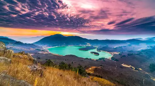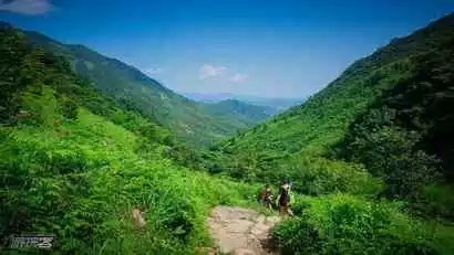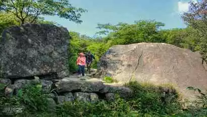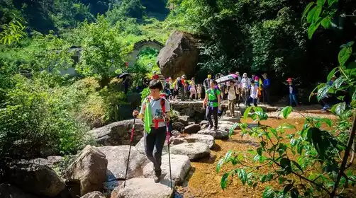 We began our hike at 7:00 PM. Today's hike was quite long. We ascended the Tianlong Grand Canyon, crossing into Zhejiang Province for about two hours before reaching Qianqing Pass. The ancient city walls, now reduced to ruins, were a sight to behold. In the dim afterglow, one could sense the vicissitudes of history. With another step, the view suddenly widened, a sense of grandeur and awe. The Tianchi Lake in western Zhejiang, situated at an altitude of 1,140 meters, appeared before the tourists. Spanning a thousand hectares and surrounded by towering mountains, it resembles a vast, divine lake, a heavenly realm floating in the air.