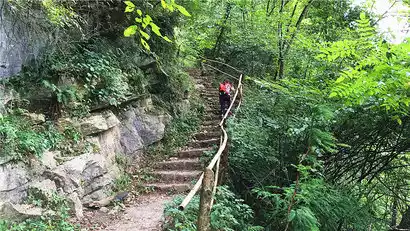 After a good breakfast, we'll venture deeper into Luyuanping and revel in its stunning scenery. Following the plank path, we'll descend into a crevice, a unique landscape formed over millennia. A stream flows year-round at the valley floor. Arriving at Luyintan, a silvery waterfall cascades from mid-air into the deep pool, its sound amplified by the canyon. It's a true story, truly heard before seen. Visitors are encouraged to pause for some photos. Then, we'll ascend the cliffside plank path and return to the surface, where we'll find a spot for lunch and a rest. After a satisfying meal, we'll continue our journey, where cascades of waterfalls unfold before us, the uppermost cascade cascading from a cavernous opening in the cliff face. In the afternoon, after packing up, we'll depart and ascend the steps, concluding our Luyuanping tour. We'll then board our bus and transfer to the ancient Lichuan Riverbed for overnight accommodation. Enjoy a treat for the evening before another hike tomorrow!