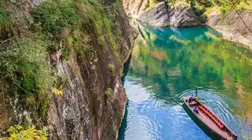 After breakfast, we departed around 8:00 AM for Shiwei Rock, the legendary Pillar of Heaven in Southern Zhejiang. Surrounded by a gorge on three sides by a stream, a towering peak rises from the earth, its shape resembling a ship's mast, hence its name. Standing 306 meters tall, Shiwei Rock is composed entirely of pale red stone, its summit resembling twin lotus buds, rising shoulder to shoulder. It's earned the nickname "Pillar of Heaven in Southern Zhejiang"! Access to the scenic area requires a boat ride. The mysterious canyon, emerald green lake, and cool breezes greet us. Hop on a wooden boat and head upstream. Shiwei Rock is surrounded by precipitous mountains. In the early morning, a wave of mist engulfs the mountains, leaving only its peak rising above the clouds like a ship's mast. The majestic Shiwei Rock is reflected in the emerald waters, while distant mountains and ancient villages create a poetic and picturesque rural landscape.