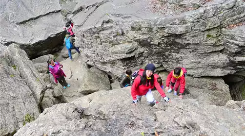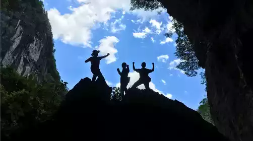 Arriving at the ancient riverbed Stonehenge around noon, the tourists enjoyed lunch there before hiking the ancient riverbed. The folds of the stones transported us back 100 million years. The riverbed rocks require tourists to climb and jump, following the ancient Qingjiang Riverbed. We passed through the marvelous landscape of the Three Caves and Two Days Keng, feeling the powerful charm of water. Each of the three dragon gates bears traces of history, bearing witness to the hardships of modern mountain life. Returning at an appropriate time, we boarded the Lichuan shuttle bus to Lichuan Station, arriving around 4:00 PM. This concludes our tour, and the tourists bid farewell. See you next time!