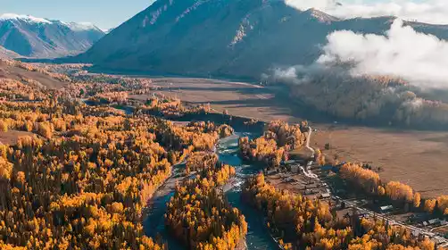 After breakfast, depart Baihaba by shuttle bus and travel along the scenic highway to Kanas, the "Backyard of God." Autumn here is like a palette of colors, with leaves gradually turning red, bright yellow, brown, and green. Against the backdrop of blue skies, white clouds, and towering snow-capped mountains, the scene resembles a fairyland on earth.