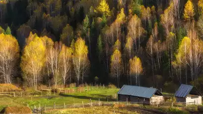 Afterwards, transfer to a scenic bus and travel along the China-Kazakhstan border highway to Baihaba Village, a quiet mountain village in the northwest of China, across the river from Kazakhstan. The villagers are a mix of Tuvans and Kazakhs. All the buildings in the village are made of wood, and the log cabins blend harmoniously with the surrounding environment, creating a sense of paradise.
