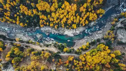 Enjoy a light lunch at noon within the scenic area. In the afternoon, head to the famous Three Bays of Kanas (Shenxian Bay, Moon Bay, and Wolong Bay), where you'll get up close and personal with the Kanas River and photograph the reflections of the boundless autumn colors. China-TravelNote will lead you on a hike through the highlights of the Three Bays (the Moon Bay to Wolong Bay section, approximately 3 kilometers long, primarily downhill, and relatively easy), along the riverside wooden plank path, enjoying the stunning autumn scenery of Kanas.