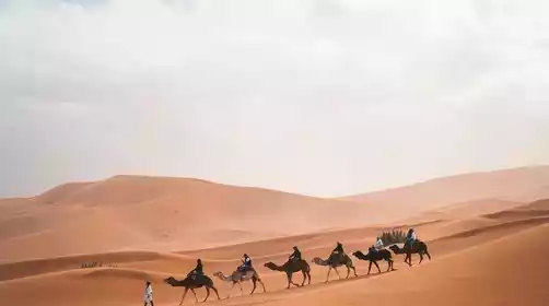 After breakfast, we'll drive to Merzouga, the gateway to the magical Sahara Desert. We'll first arrive in Erfoud, where we'll transfer to a 4x4 jeep and enter the desert. (Please bring a scarf, sunscreen, and sunglasses.) Here, you can witness breathtaking sunsets (weather permitting).