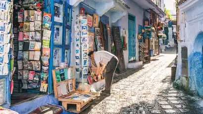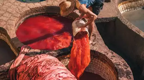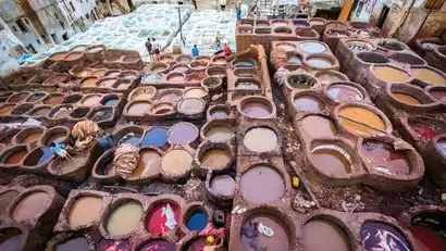 Narrow, winding alleys, crowded bazaars, the call to prayer from mosques, and the pungent smell of leather factories present a profound challenge to the senses of sight, hearing, and taste. World-renowned handicraft workshops produce copper plates, carpets, and dyeing. Blue mosaics can be seen everywhere in the city, including in buildings, interiors, and shops displaying mosaic artworks.