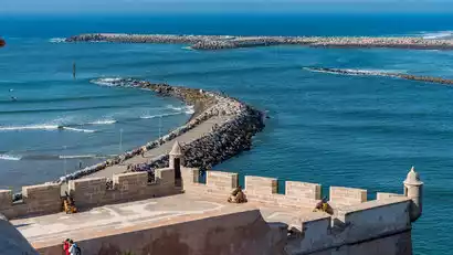 We enjoyed lunch at a Rabat restaurant overlooking the Atlantic Ocean. Afterward, the tourists headed to the Kasbah of the Oudayas, a small town nestled on the cliffs of the Atlantic Ocean and the filming location for Mission: Impossible 5. This area, known as Rabat's Blue and White Town, offers a chance to experience the vast beauty of the Atlantic Ocean.