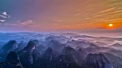 Sunrise at the Tianzi Mountain Cableway Observation Deck