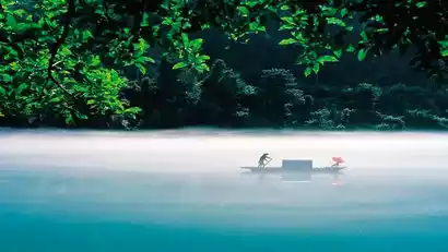 The ancient city is gently shrouded in a layer of mist, and the Tuojiang River is looming in the mist. Small boats slowly pass by on the river, causing ripples, just like an ink painting.