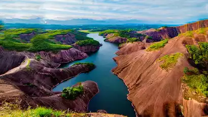 Drive to Gaoyiling Scenic Area at the right time. Gaoyiling is the symbol of the Danxia landform in southern China. Its most notable feature is the beautiful puddles dotted around the Danxia landform. The red rocks, green waters, dangerous villages and strange ravines are all incredibly beautiful.