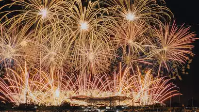 The fireworks show begins at 8 PM, with timed music and colorful fireworks blending together to create a visual and auditory feast. From waterfalls of fireworks to colorful clouds and AI-powered fireworks, each show has a different theme, reaching new heights of beauty!