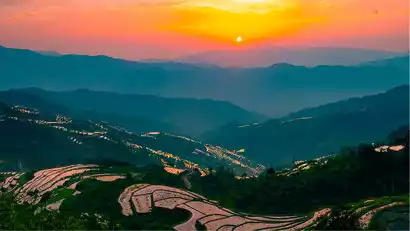 Sunset at the Huayao Terraces on the hillside of Xupu