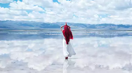 After breakfast, depart for Chaka Salt Lake, known as China's "Sky Mirror." Amidst the blue skies and white clouds, heaven and earth merge into one, creating a scene that feels as if you're standing in mid-air. Here, you'll admire the stunning salt crystal patterns formed on the lake's surface, creating a fairytale-like experience.