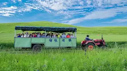 Upon arrival at Heishantou, check in at the hotel and rest for a while. Afterward, China-TravelNote arranges a special grassland paradise: visit herders, feed lambs, ride the popular colorful oil barrel train, or dress up in Mongolian costumes and take photos on the grasslands.