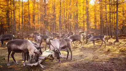 After breakfast, depart for Aoluguya Reindeer Park. The Ewenki, a hunting tribe from the Greater Khingan Range, migrated from the shores of Lake Baikal hundreds of years ago, using reindeer as their primary means of transportation. Step into the forest and get up close and personal with the "four-legged" reindeer.