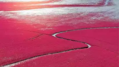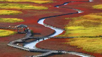 After breakfast, depart for Panjin's Red Beach National Scenic Corridor. Located at the mouth of the Liaohe River, it boasts one of the world's most well-preserved natural red beaches. Featuring the world's rare and renowned red beach, the vast coastal mudflats seamlessly blend natural and cultural landscapes, presenting a magnificent and beautiful scene.