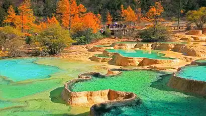 Depart for Huanglong Scenic Area at the right time. Because there are many colorful pools in the ravine, the colors change with the surrounding scenery and the angle of sunlight. It is known as the "Fairyland on Earth". It is a well-preserved plateau wetland in China, famous for its "four wonders" of colorful pools, snow-capped mountains, canyons and forests. The main scenery is the large-scale, ingenious structure and colorful surface travertine landscape. It is famous both at home and abroad for its rare karst landforms and can be called a paradise on earth.