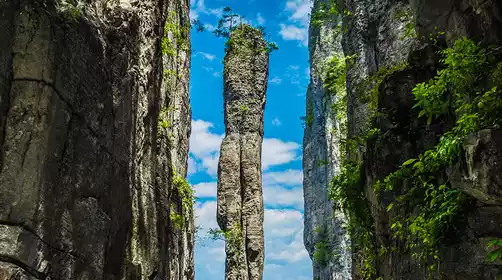 After breakfast, take your trekking poles and supplies and head to the top of the mountain. On the way, you will pass Chaotian Bamboo Shoot and overlook the Grand Canyon with its independent stone pillars standing proudly in the canyon.