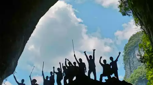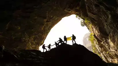 Entering the bottom of the canyon, under the guidance of the team leader, the first thing that caught our eyes was the huge white cave. Everyone was curious and eager to explore it.
