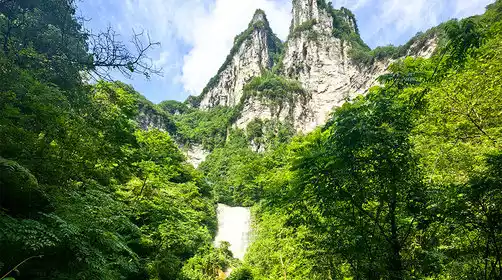 Next, we'll visit the U-shaped Yunlong Fissure, formed 50 million years ago. Its lower reaches flow into the Qingjiang River, leaving a deep groove carved into the earth like a knife or axe. Within the fissure, water gurgles and waterfalls cascade. Don't miss the colorful Huanglong Waterfall, Rainbow Waterfall, Yunlong Waterfall, Icefall, and Mufu Waterfall.
