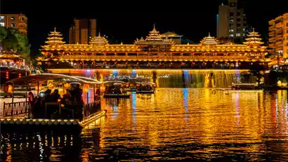 Visit the night view of Xuan'en County, enjoy the bamboo raft night tour, and taste grilled live fish.