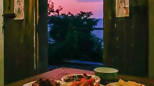 In the evening, we stood on the observation deck of the mountain inn, gazing out at the golden fields and the Xin'an River flowing around the mountains. In the night, under the stars, we chatted about the mountains, killing people, Three Kingdoms, and adventure games, and fell asleep in time.