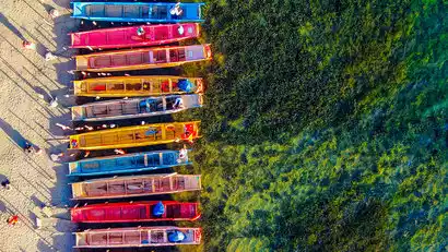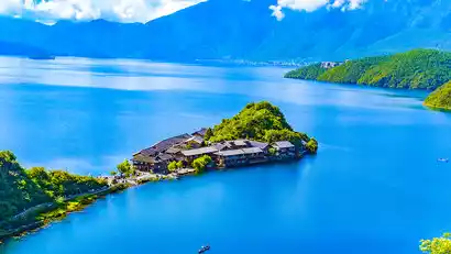Wake up in the morning and enjoy your own leisurely schedule. Stroll to the lakeside and witness the unmissable sunrise over Lugu Lake, quietly watching the sun slowly rise from behind the golden-rimmed clouds. After breakfast, head to Sanjiacun Wharf to board the Mosuo people's unique water transport, the Pig Trough Boat. Enjoy the morning views of Lugu Lake as the Mosuo boatmen sing their songs, drifting on the azure waters. Then, ascend to Liwubi Island and follow a winding path to the island's summit for panoramic views of Lugu Lake.
