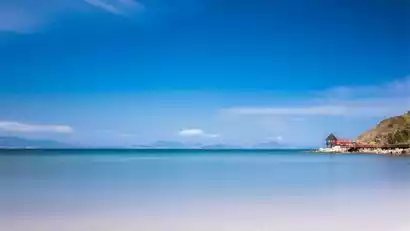 We need to take a ferry to the island, which has a tropical scenery. The underwater world has countless colorful tropical fish and charming coral reefs.