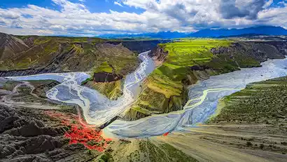 Arrive at Qorma, then drive west along the Kashgar River, enjoying a beautiful "hundred-mile gallery" [Tangbula Grassland] along the way, then return to Qorma and continue along the Duku Highway, arriving at the hotel in the evening to rest.