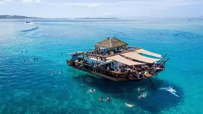 Cloud 9 is Fiji's first internet-famous floating bar, split over two levels. Snorkeling gear is charged, but life jackets are free. Pizza, soft drinks, and alcoholic beverages are available, and China-TravelNote also offers a 60 Fijian dollar bar voucher. Built on a coral reef, the water is vibrant green under the sunlight, and the crystal clear waters are breathtaking. Come experience this paradise on the sea.