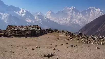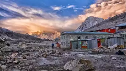 We'll continue along the glaciers of the Khumbu region, reaching Gorakshep (5,180 meters). Then, we'll ascend a steep slope to the renowned Kala Patthar viewpoint, a focal point for many of Everest's southern slopes. From here, we'll witness a breathtaking sunset over Everest. Witnessing the breathtaking golden glow of the sun against this vast snowy backdrop—perhaps this is the true meaning of this journey. From Sagarmatha, we'll witness the most breathtaking views of Everest! We'll quietly gaze upon the breathtaking beauty of Everest, etching this scene in our minds forever.